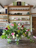 Using flowers cut that very day from her garden, award winning florist Georgie Newbery will show you how you can create stunning flower arrangements to decorate your wedding or event table, with no floral foam, just perfectly sustainable mechanics and fresh garden flowers.